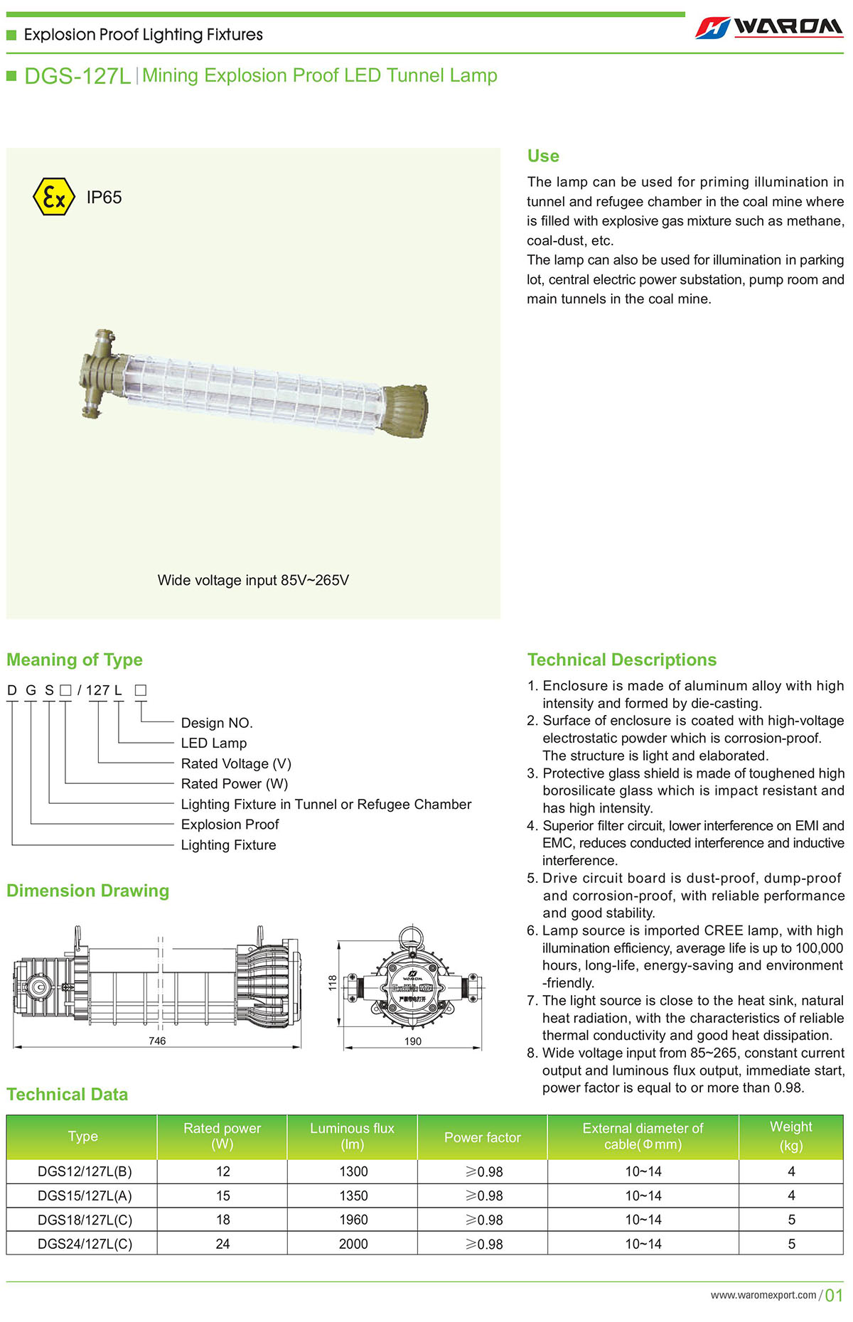 Use: Thelampcanbeusedforprimingilluminationin tunnel and refugee chamber inthecoal mine where is filled withexplosivegasmixturesuch as methane, coal-dust, etc. Thelampcanalsobeusedforillumination inparking lot,centralelectricpowersubstation,pumproomand main tunnels in the coal mine.