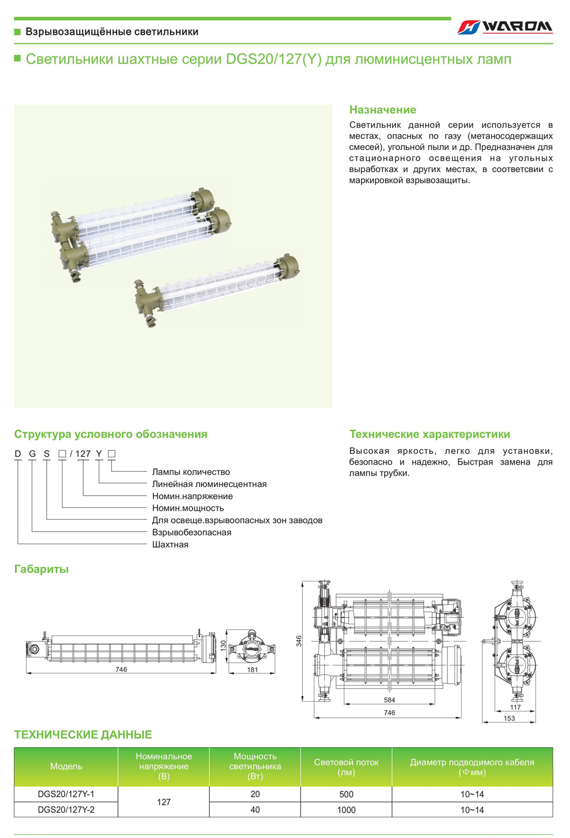 Главная > Продукты > Взрывозащищённые светильники > Светильники шахтные серии DGS20/127(Y) для люминисцентных ламп