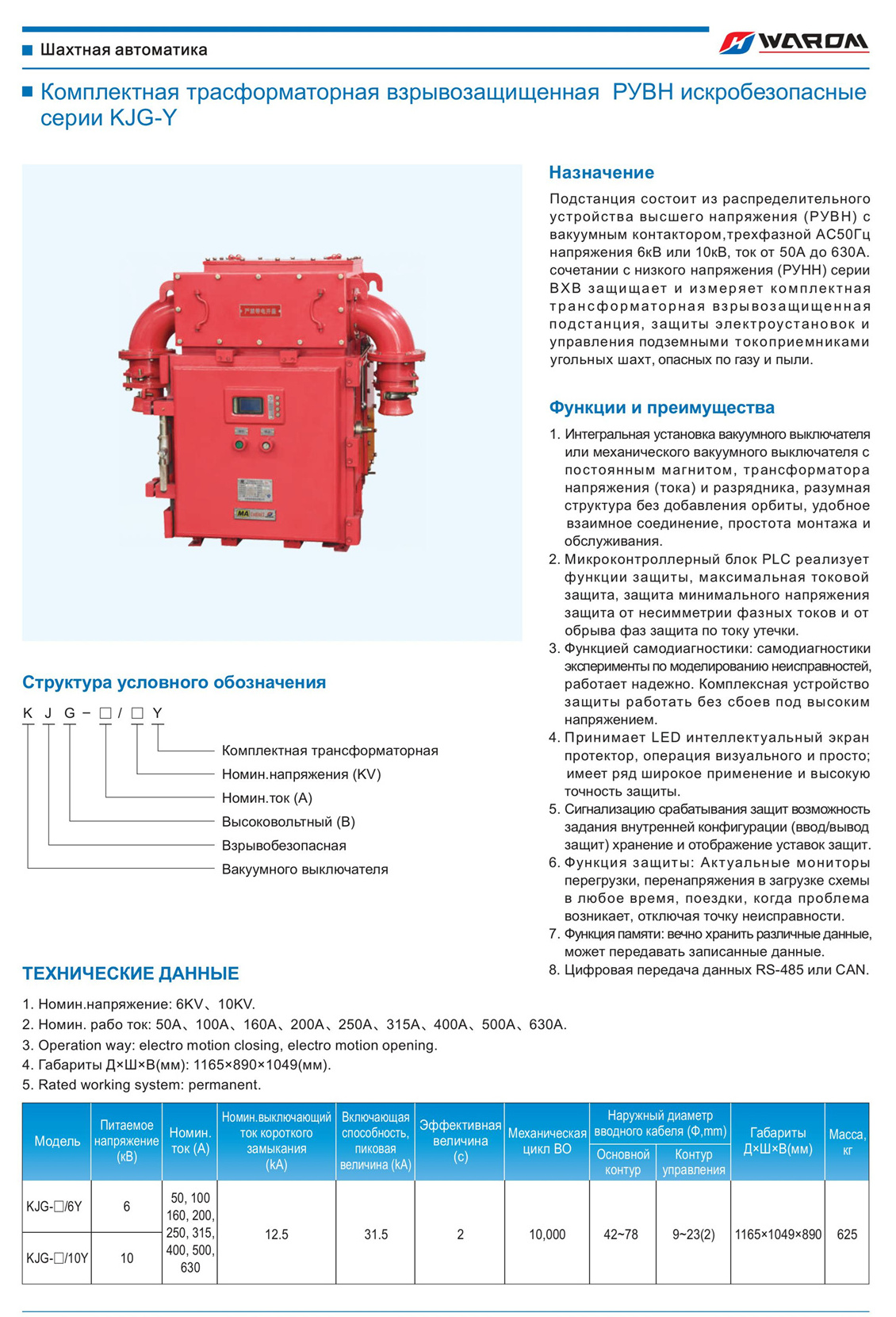 Комплектная трасформаторная взрывозащищенная РУВН искробезопасные серии KJG-Y