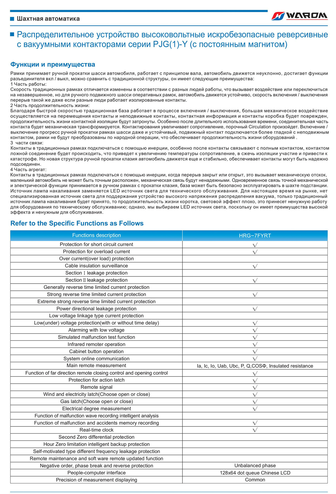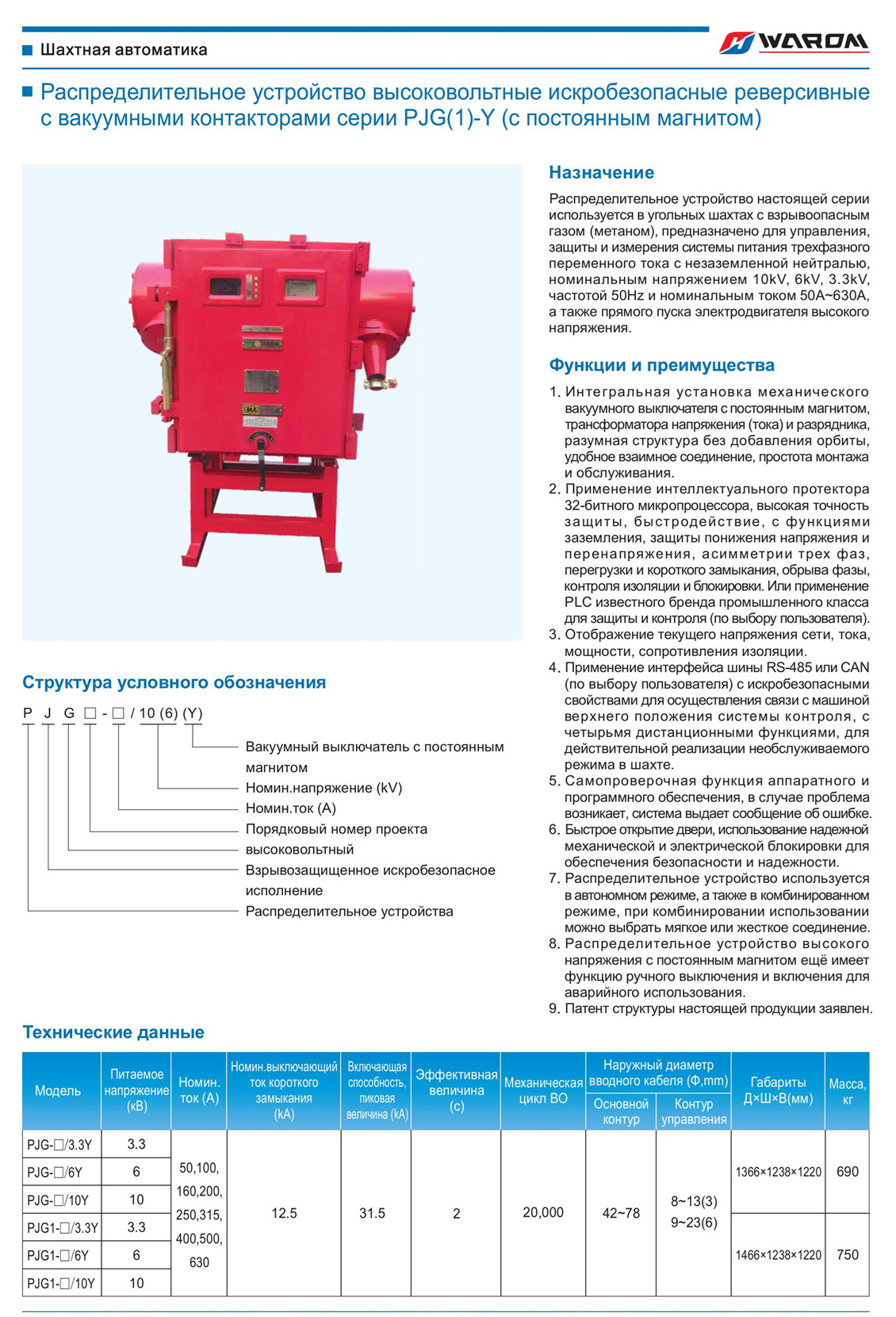 Распределительное устройство высоковольтные искробезопасные реверсивные с вакуумными контакторами серии PJG(1)-Y (с постоянным магнитом)