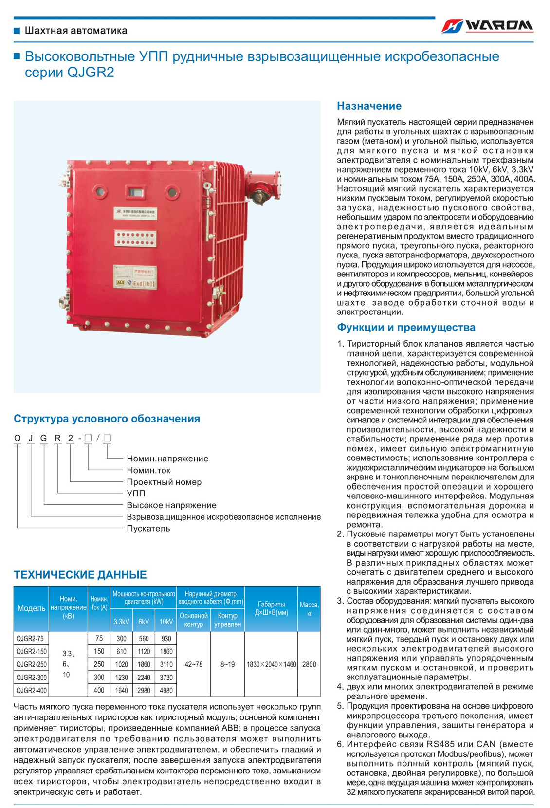 Главная > Продукты > Шахтная автоматика > Высоковольтные УПП рудничные взрывозащищенные искробезопасные серии QJGR2