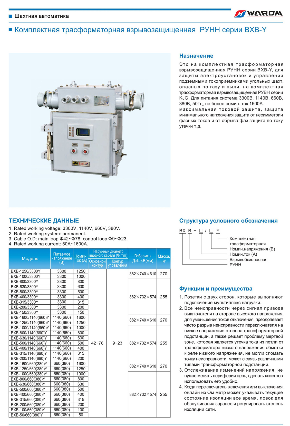 Главная > Продукты > Шахтная автоматика > Комплектная трасформаторная взрывозащищенная РУНН серии BXB-Y