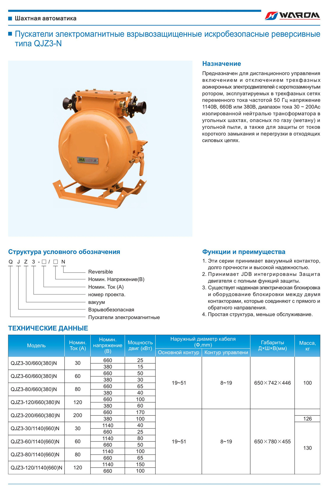 > Шахтная автоматика > Пускатели электромагнитные взрывозащищенные искробезопасные реверсивные типа QJZ3-N